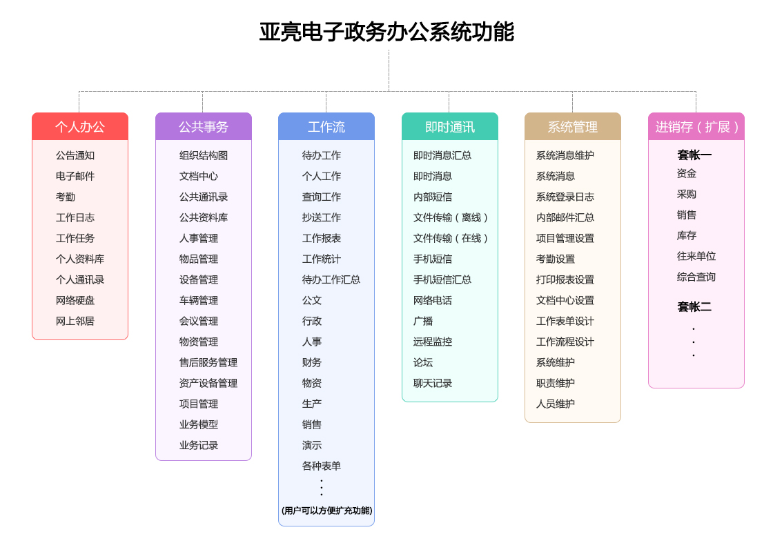 >亞亮電子政務(wù)辦公系統(tǒng)本著簡單、適用、高效的原則,貼合單位實際需求,實行通用化的產(chǎn)品設(shè)計,充分體現(xiàn)單位規(guī)范管理、提高辦公效率的核心思想,為用戶提供一整套標準的辦公自動化解決方案,以幫助單位迅速建立便捷、規(guī)范的辦公環(huán)境,迅速提升單位的管理和信息化應(yīng)用水平,并降低投資成本。